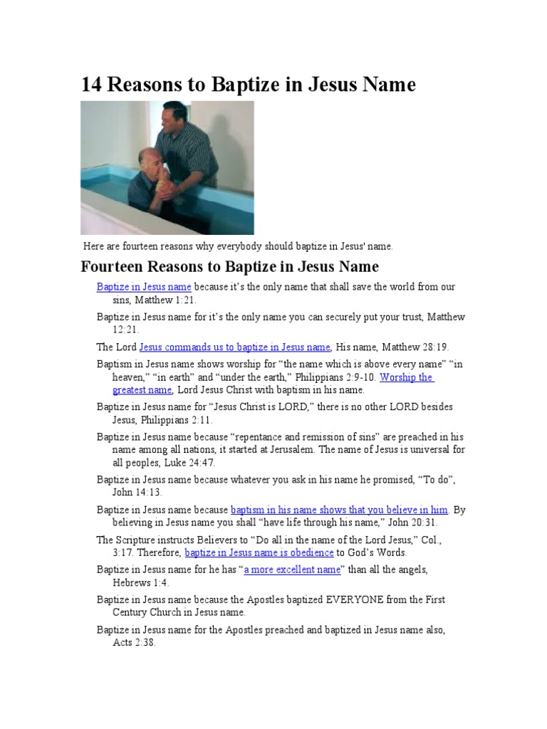 If the person is unable to verify whether or not they were baptized, or it cannot be determined if the person's baptism was valid, then. To baptize in jesus' name means to baptize based on this same authority that was passed along to the apostles by jesus himself, since all authority had been granted to when a minister baptizes someone in jesus' name we are doing it in jesus' stead and initiating that person into christianity. And you will receive the gift. I would exhort anyone reading this post who has not yet taken on the sweet name of jesus in baptism to search the scriptures for themselves and prayerfully ask the holy spirit to guide you. Concerning baptism in jesus name only, they skip over matthew 28:19 and then point out acts 2:38.