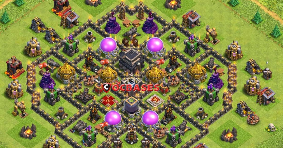 This is a unique base which makes ground troops go round and round until they reach the core and the best part is teslas x bows and air sweepers along with town hall and clan castle is in the center of the village. Coc th 9 base design is such that all collectors and mines are kept inside of base so that available loot is not so vulnerable to enemy troops and kept protected. Bahkan hingga banyak yang menghabiskan banyak rupiah demi memainkan game ini. Jika sudah mendapatkan base th 8 terkuat yang kamu inginkan sekarang saatnya untuk menonon video cara war th 8 agar mendapatkan full bintang. Base th 9 anti 3 bintang.